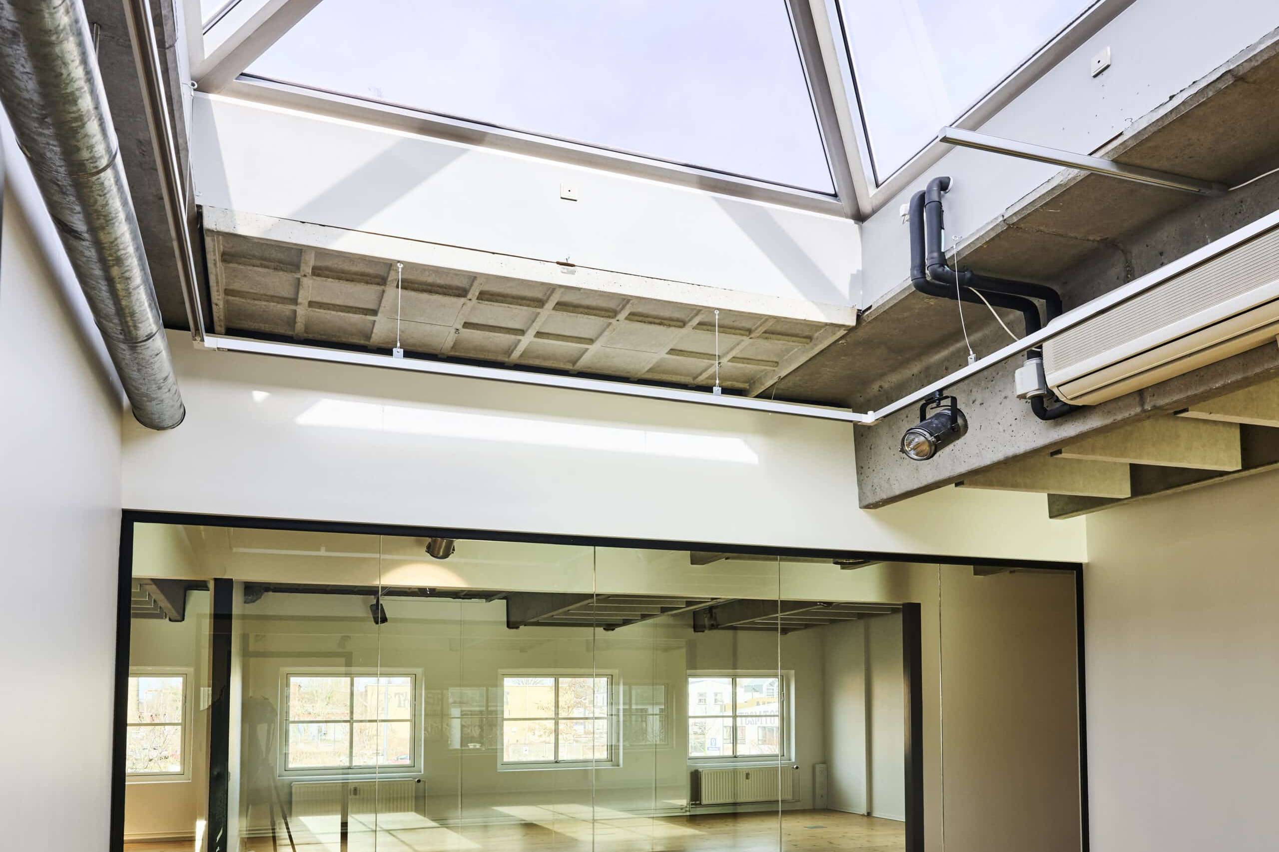Råt og lyst kontorlejemål med åbent miljø og moderne faciliteter