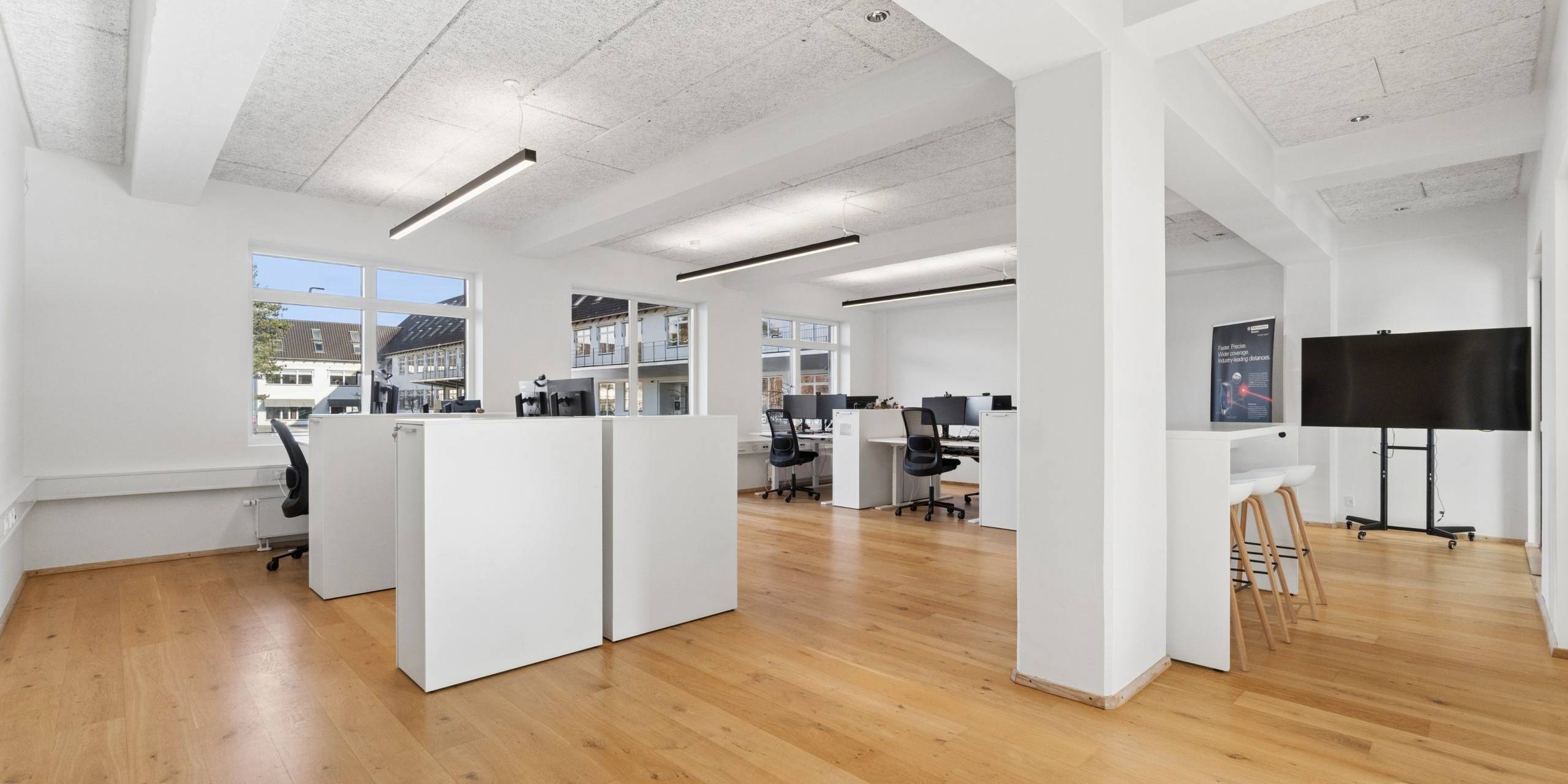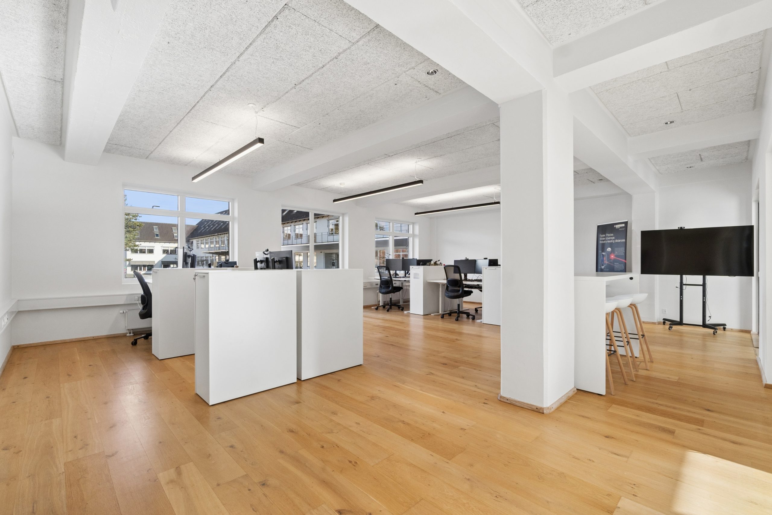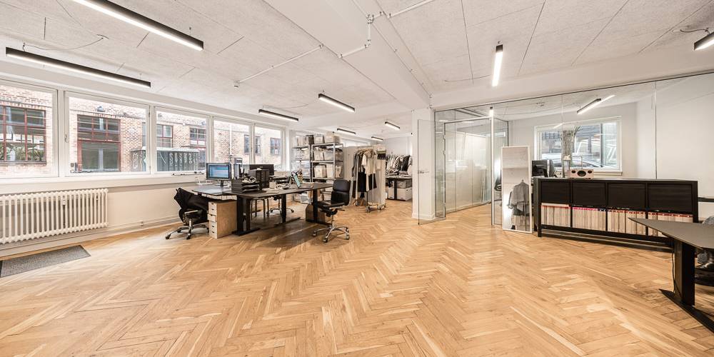 Råt kontorlejemål med oprindeligt industrigulv og massivt lysindfald