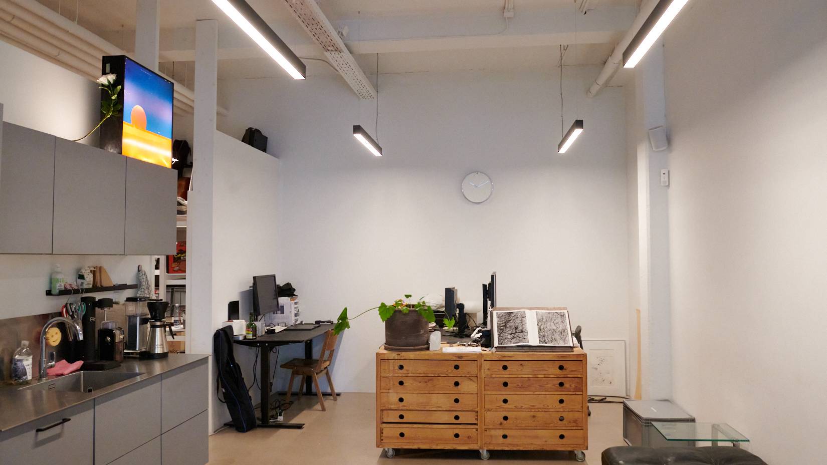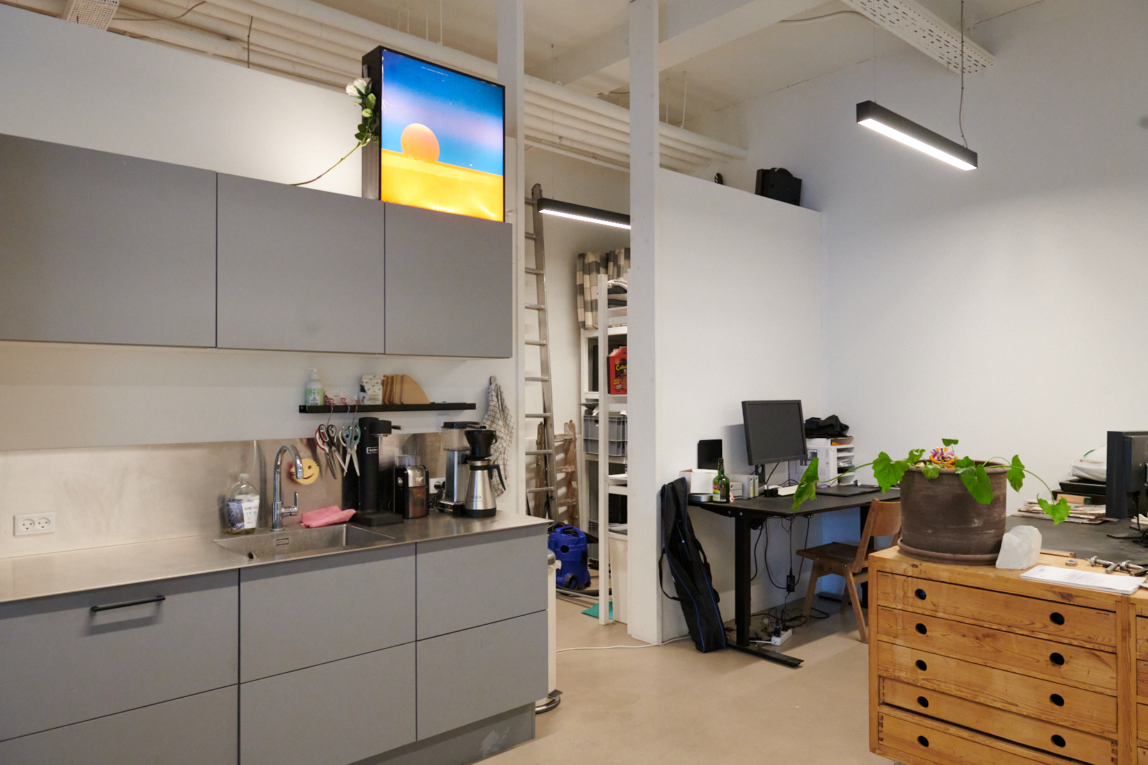 Lejemålet har højt til loftet, et råt udtryk og store vinduespartier, som giver et smukt, naturligt lysindfald. Det er ideelt for virksomheder og studier, der søger et inspirerende rum med karakter.