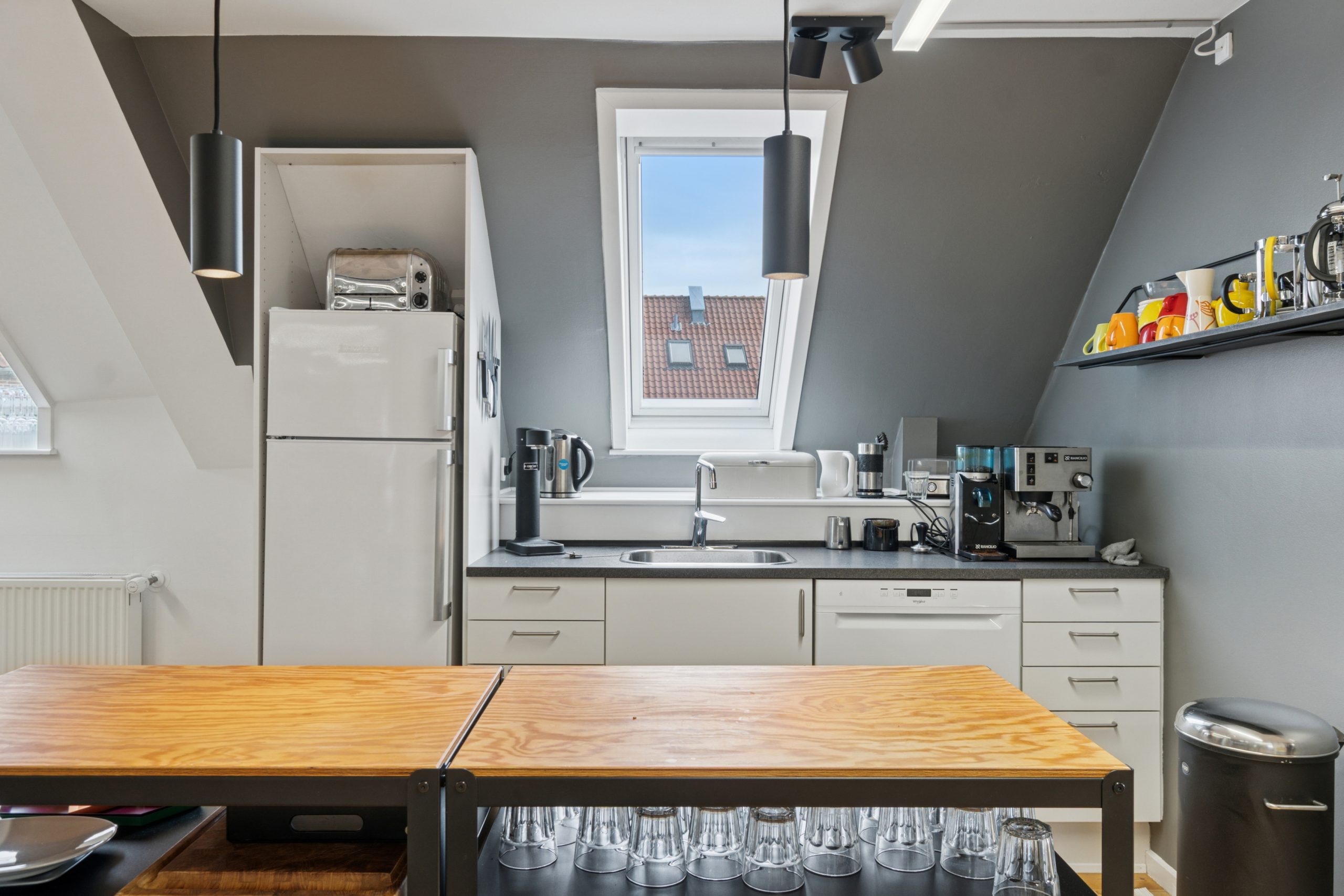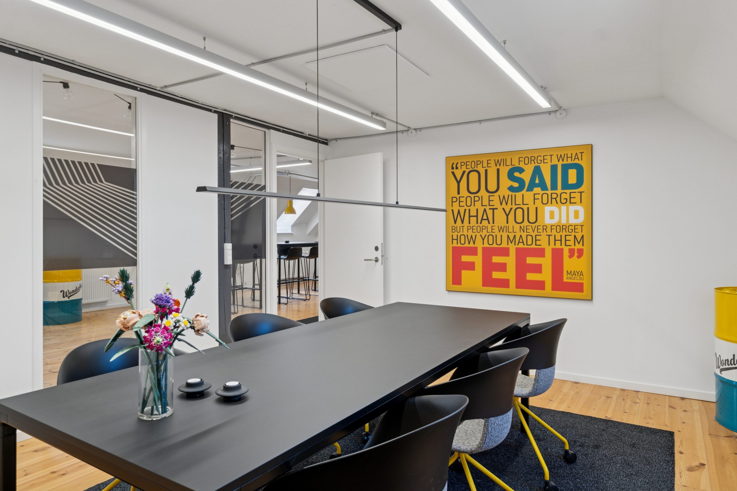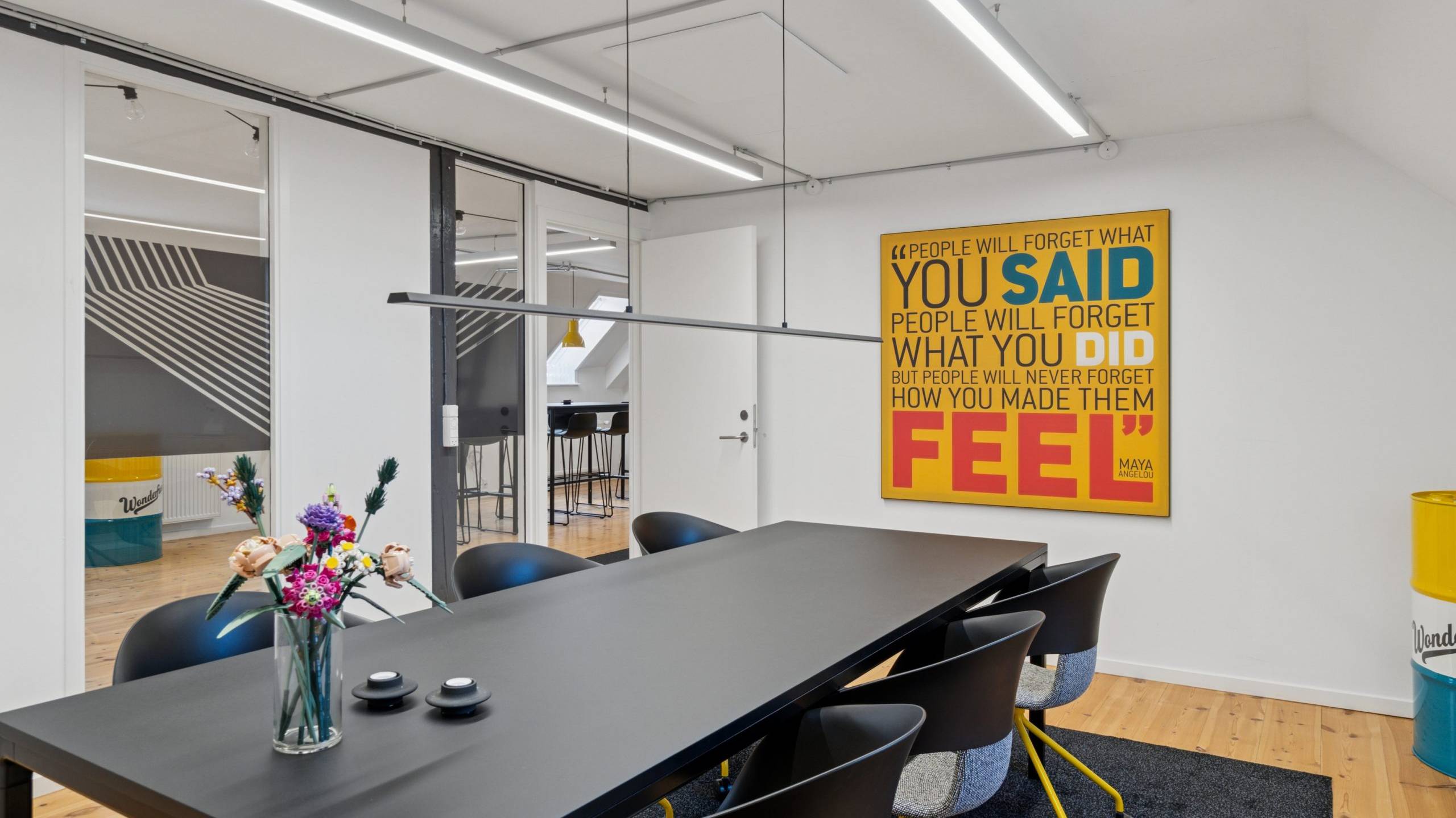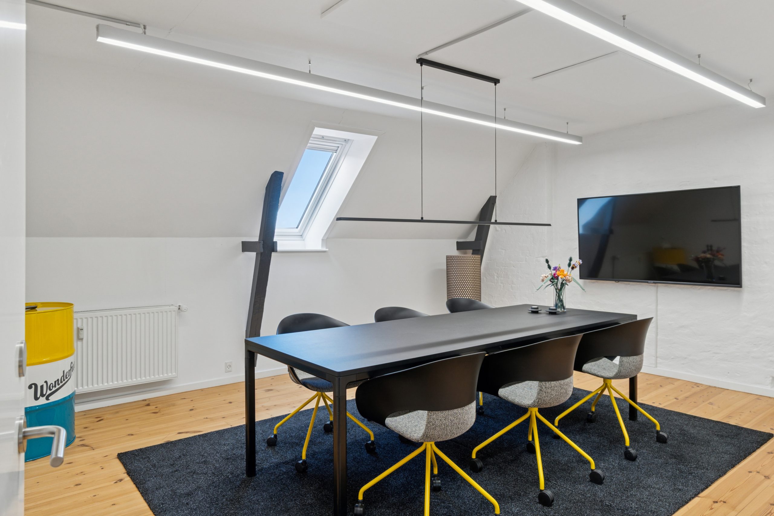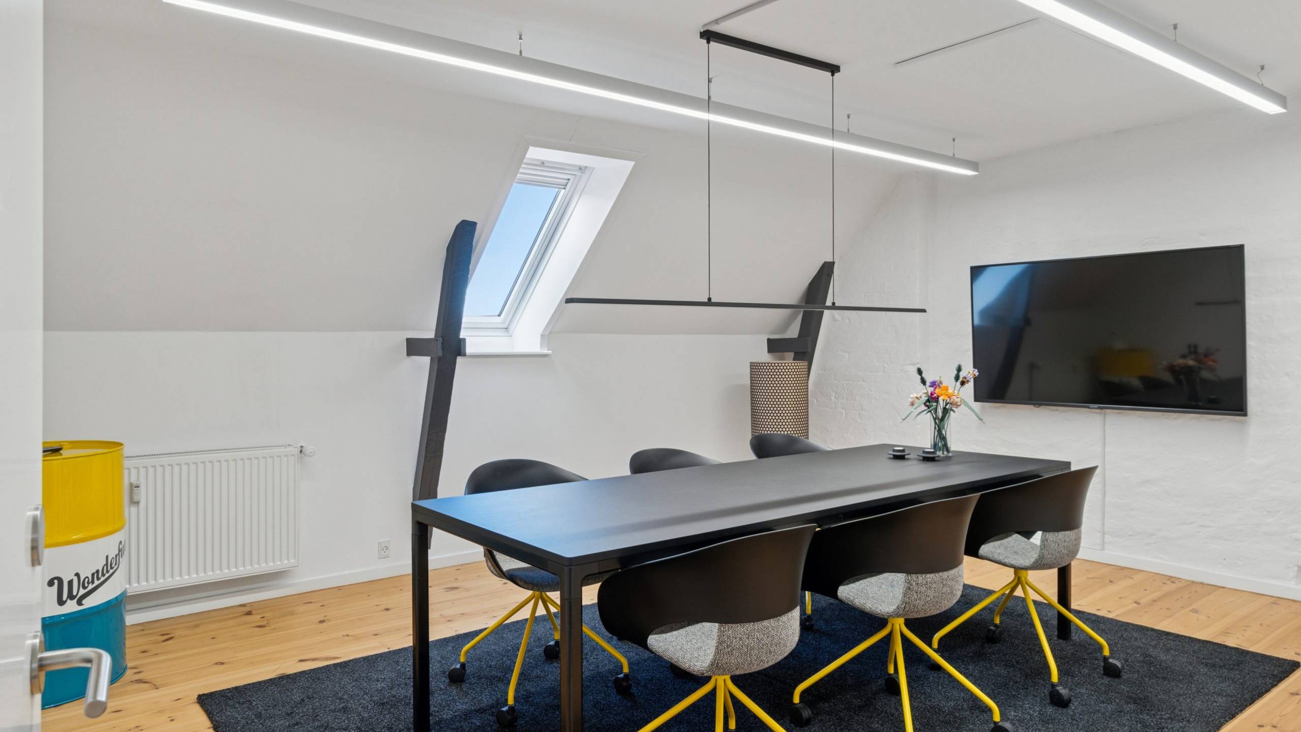 Der er en helt særlig stemning i lejemålet, der emmer af kreativitet og fordybelse på samme tid, og som med sin stilrene indretning er attraktiv for mange virksomheder inden for de kreative brancher.