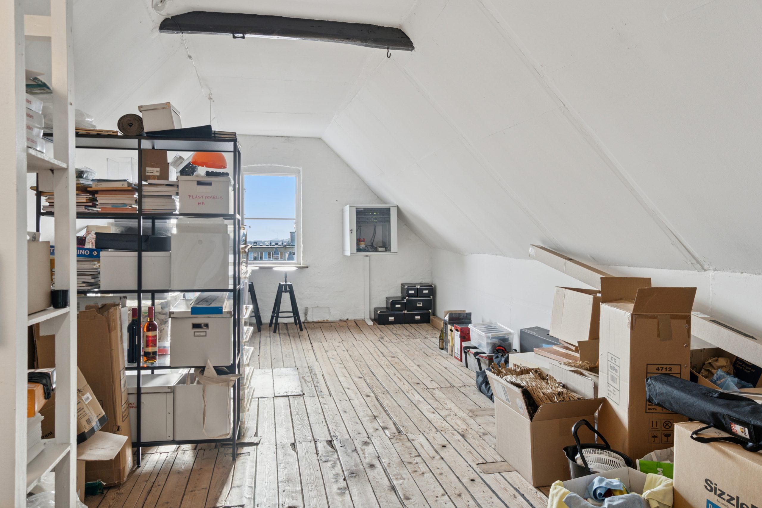 Kontorlejemålet er beliggende i en tidligere industriejendom, der er omdannet og moderniseret til en moderne ejendom. Lejemålet er beliggende på 3. sal med intern trappe til et arkiv/lagerlokale på 4. sal. Kontoret på 3. sal har fine fyrretræsgulve, synlig bjælkekonstruktion og delvise skråvægge.