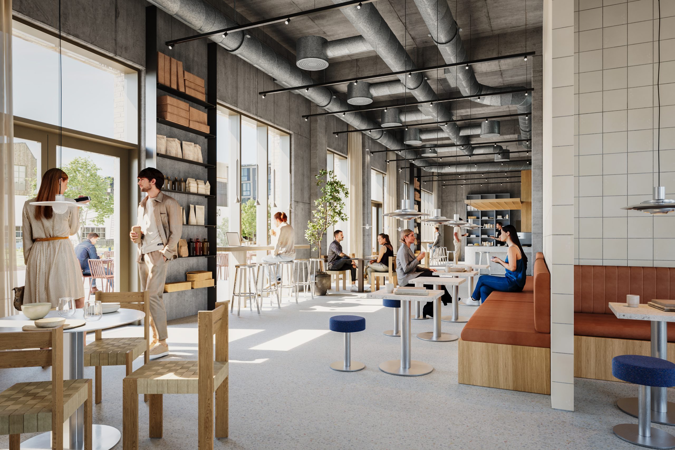I stueetagen etableres et attraktivt erhvervslejemål velegnet til café, kaffebar eller restaurant. Lejemålet har ca. 4 meter til loftet, store vinduespartier og høj synlighed mod gaden. Der er direkte adgang til en solrig terrasse med mulighed for udendørs servering.