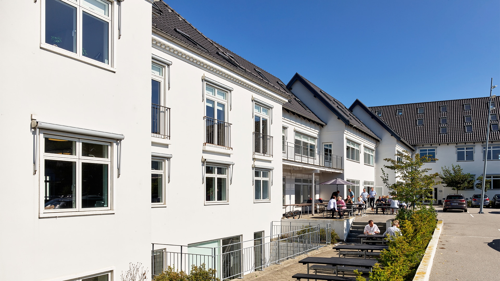 Til ejendommen hører desuden et fælles gårdrum, hvor der både er plads til parkering og mulighed for at nyde sin frokost under åben himmel.